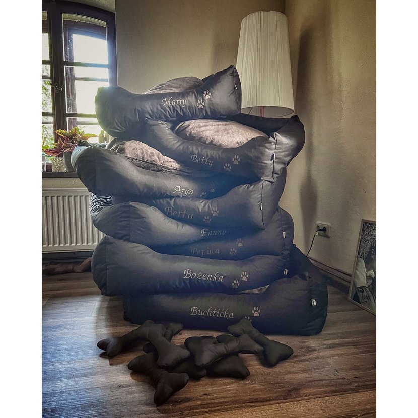 Díky odolné batohovině v tmavě hnědé barvě s vyšitými tlapkami, s vyjímatelným polštářem z krásné chlupatinky a zateplenému dnu z dutého vlákna se váš chlupatý kamarád bude cítit jako v bavlnce. Výplň pelechu je drcená PUR pěna, kterou ručně plníme do podšívky. Díky tomu je zaručeno, že váha vašeho miláčka pelech nezmáčkne a neleží na tvrdé zemi, jako se často stává u běžně dostupných pelechů. A navíc, tloušťka pelechu pomáhá předcházet otlakům kloubů u vašeho pejska.