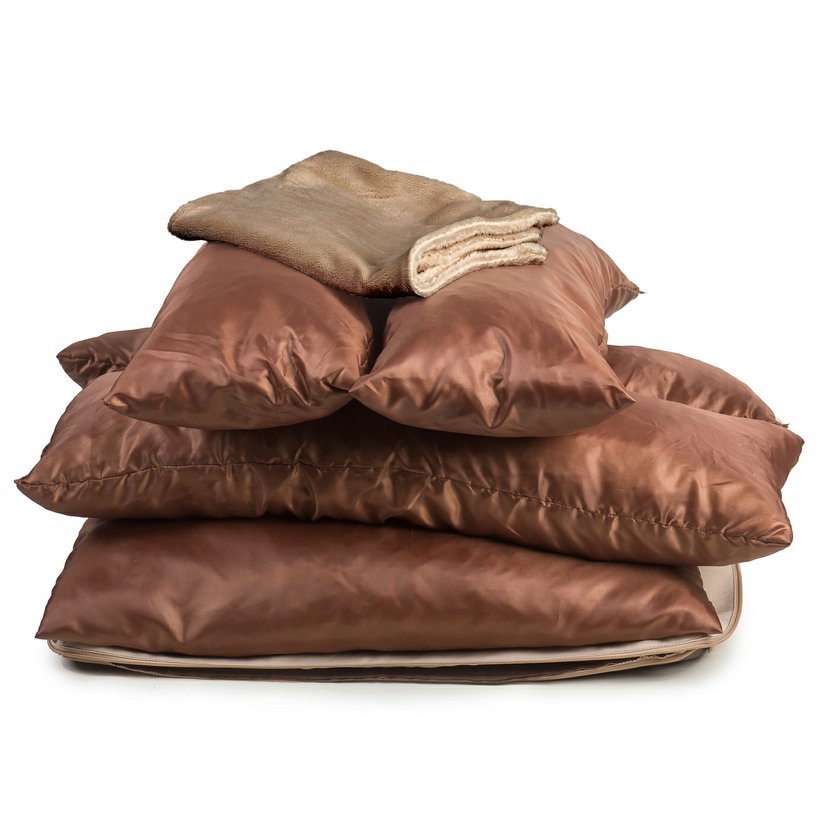 Díky odolné batohovině v hnědé barvě kombinované s béžovou, s vyjímatelným polštářem z krásné chlupatinky a zateplenému dnu z dutého vlákna se váš chlupatý kamarád bude cítit jako v bavlnce. Výplň pelechu je drcená PUR pěna, kterou ručně plníme do podšívky. Díky tomu je zaručeno, že váha vašeho miláčka pelech nezmáčkne a neleží na tvrdé zemi, jako se často stává u běžně dostupných pelechů. A navíc, tloušťka pelechu pomáhá předcházet otlakům kloubů u vašeho pejska.